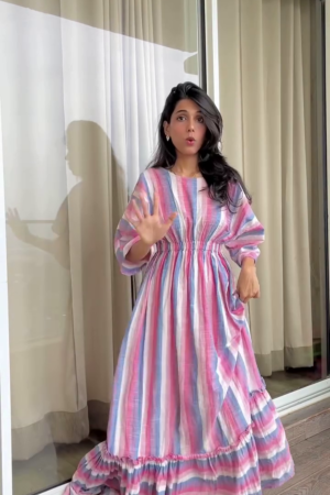 Beautiful Lavender Organza Saree with Mirror and Thread Work Border