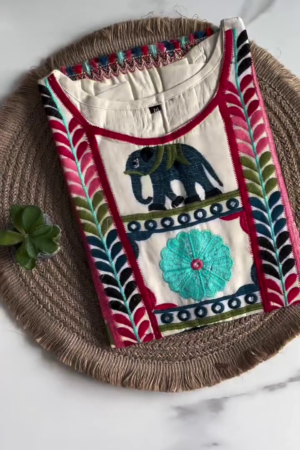 Beautiful White Cotton Saree with Blue Floral Prints and Lace Border