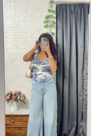 Light Blue Georgette Anarkali Suit with Embroidered Yoke and Flowing Flair