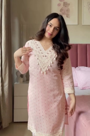• Kurti: Elegant straight cut kurti with intricate embroidery work for a refined look.