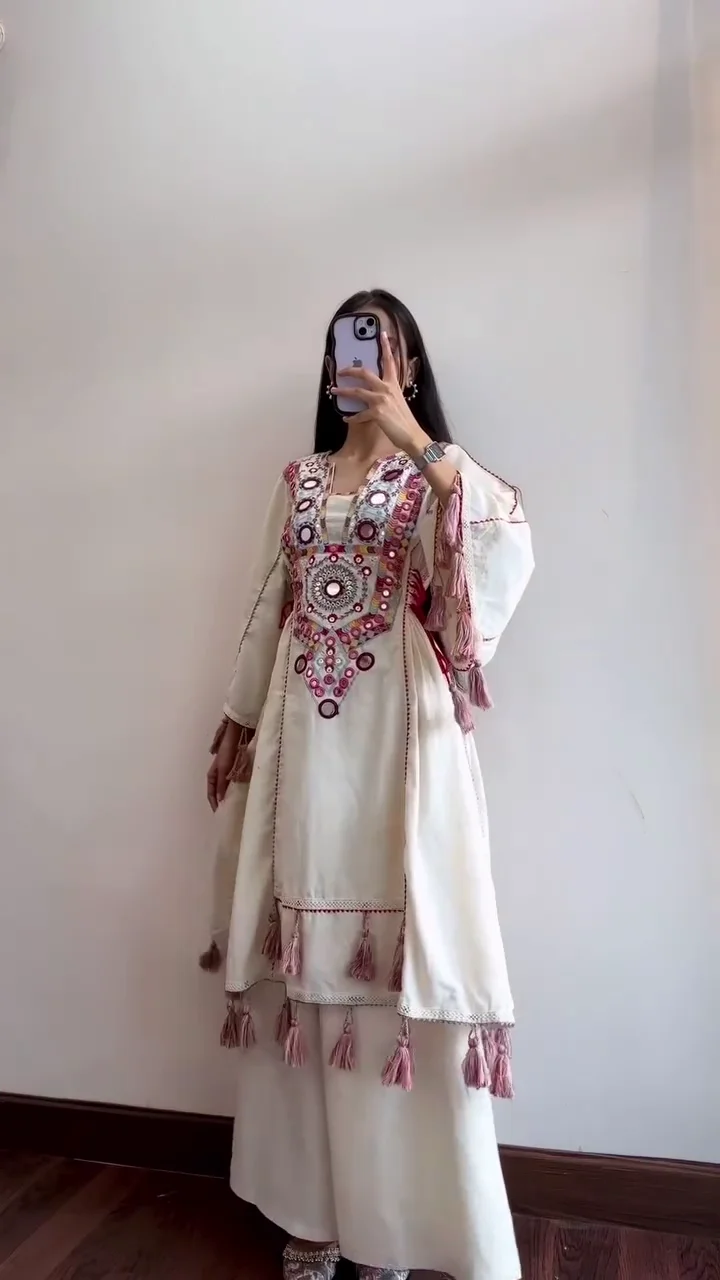 Blend of Tradition & Modernity: Combines classic ethnic mirror work with contemporary design elements for a unique festive look.